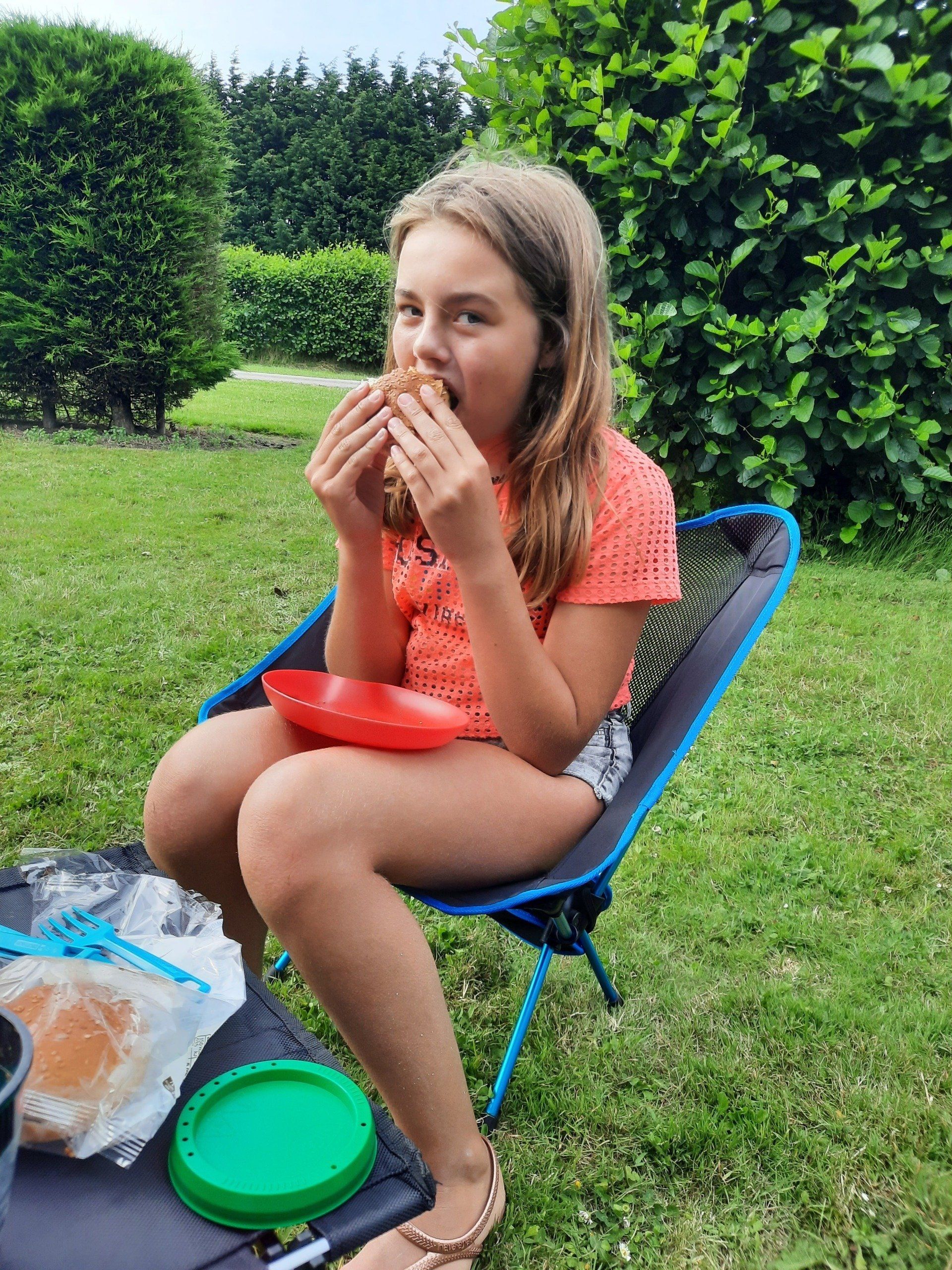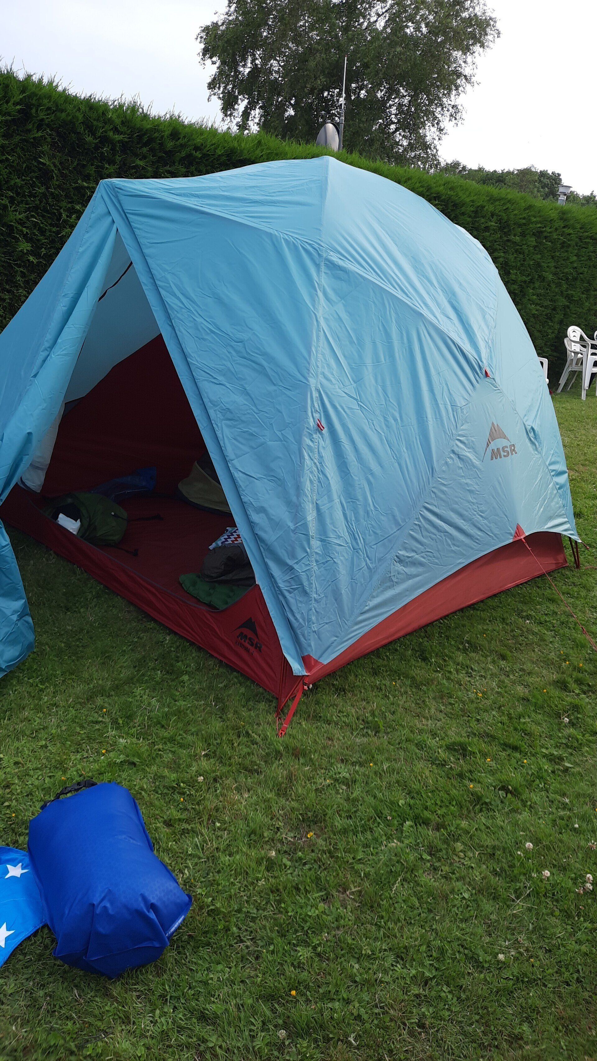 Eenmaal aangekomen op de camping werden de tenten opgezet. Onze grote MSR Habitude 4 tent gingen we voor de tweede keer gebruiken. En de oudste twee gingen beide slapen in een Highlander Blacktorn 1 lichtgewicht. Omdat we deze week best veel wilde doen, paste elke keer boodschappen doen niet echt in de planning. We hadden ervoor gezorgd dat we alle boodschappen bij hadden. Als onze eerste camping maaltijd hebben we broodjes hamburgers gemaakt. Van de tenten schrijf ik nog een keer een recensie.